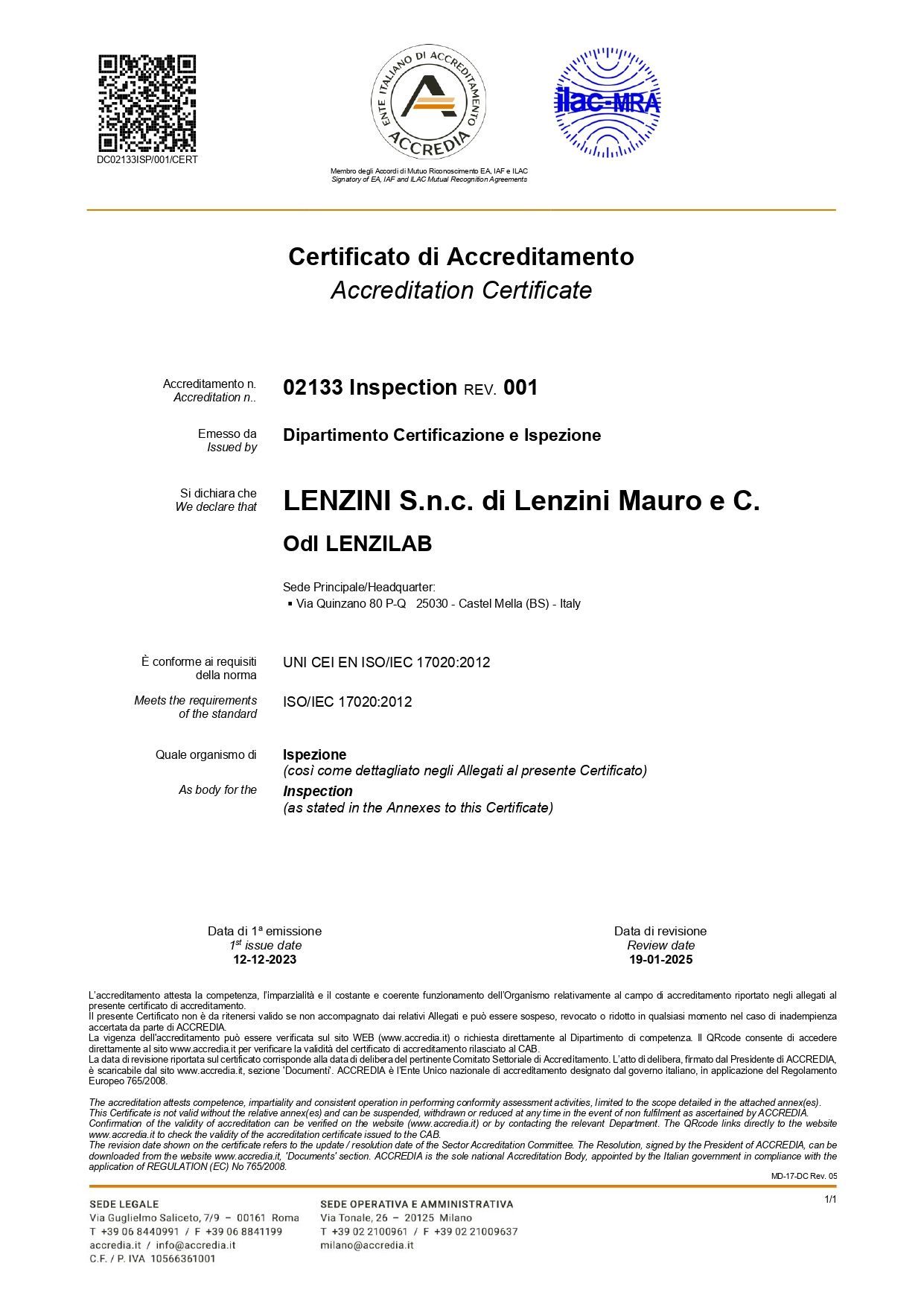 Certificato Accredia