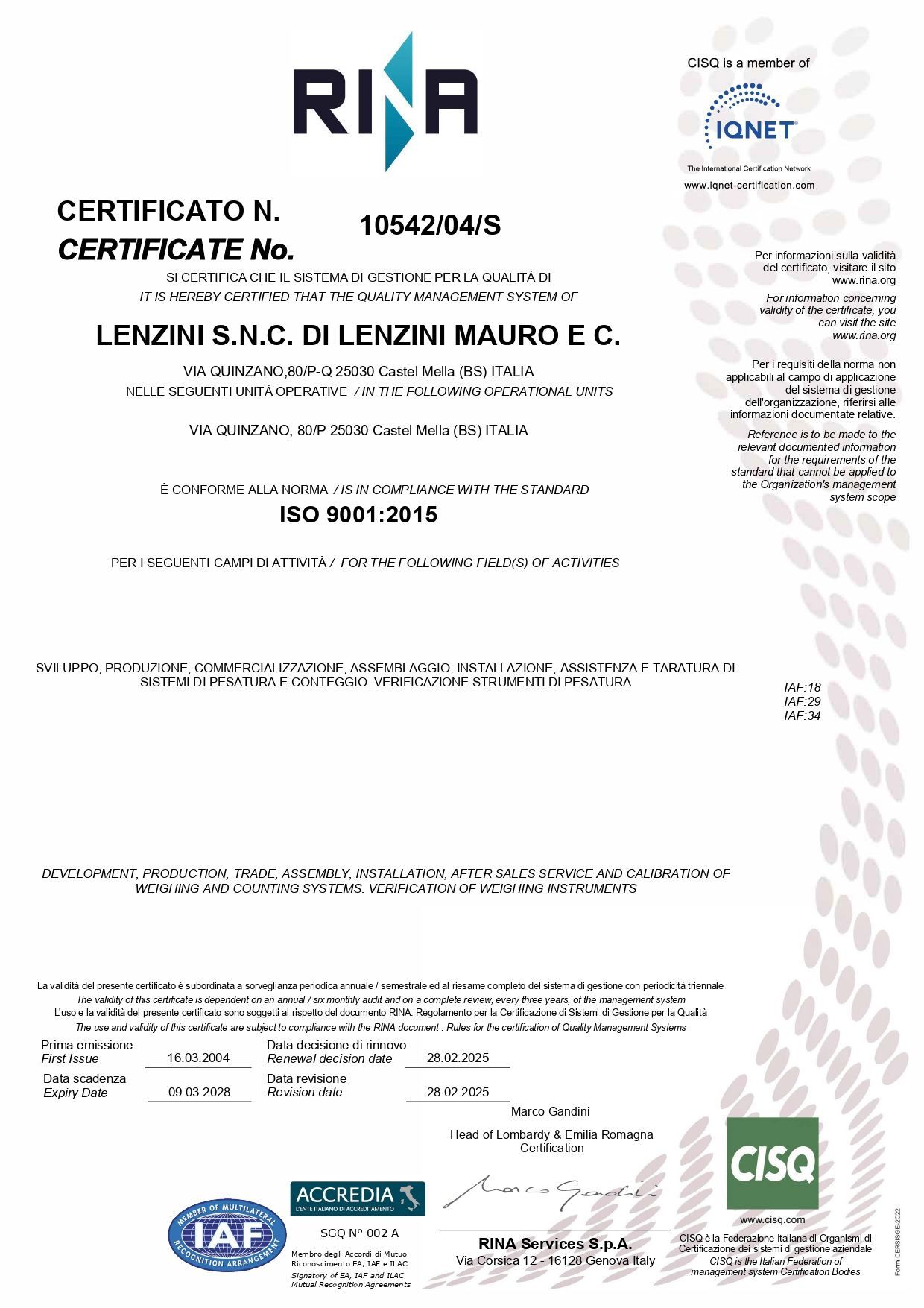 Certificato Rina