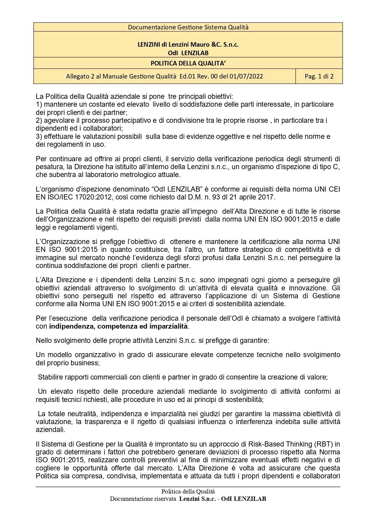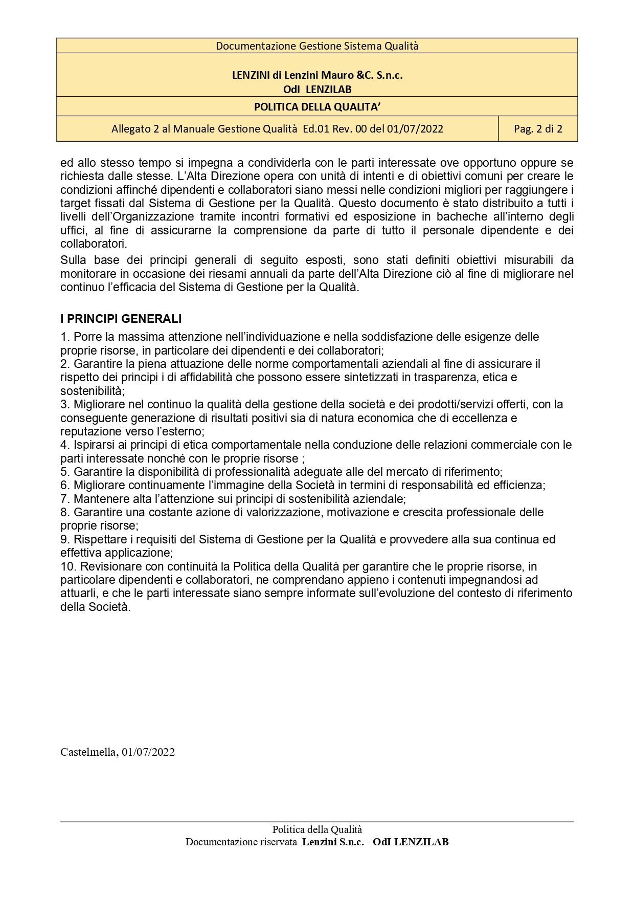Politica Qualità